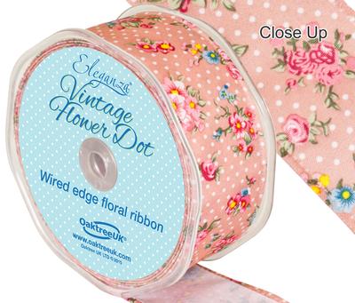 Classic Pink Vintage Flower Dot Wired Edge Ribbon
