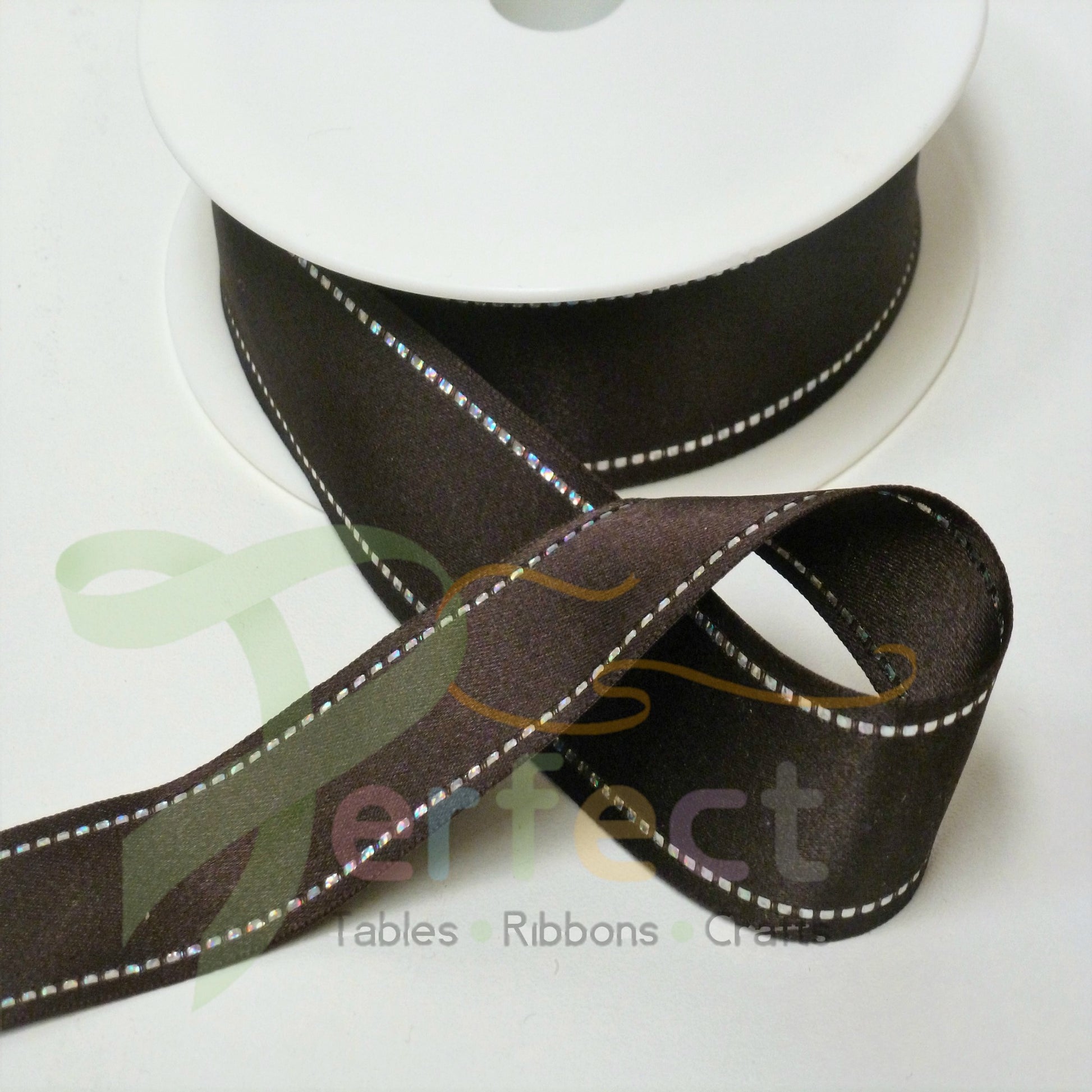 Dark Brown Shindo Diamante Edge Ribbon 15123 163