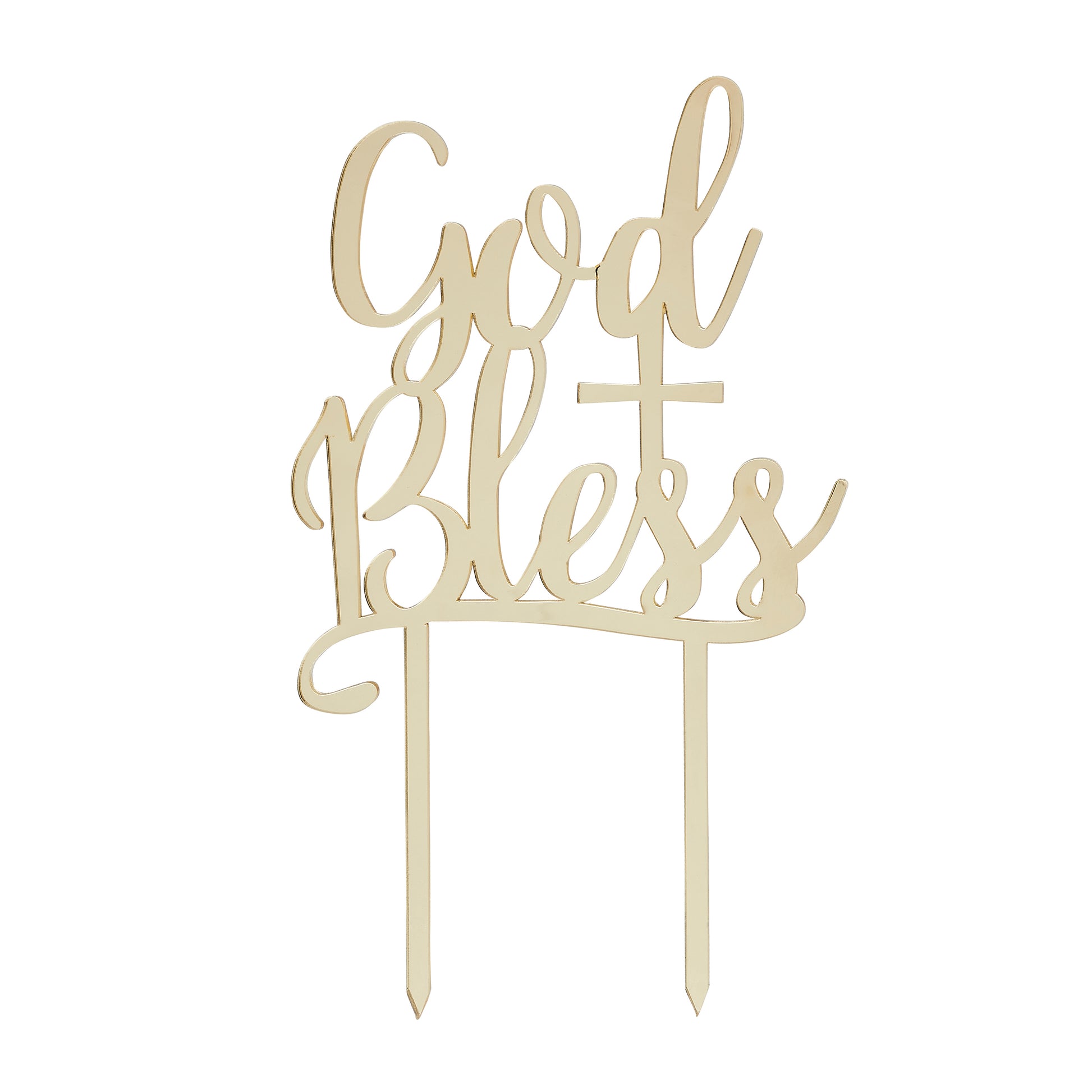 Communion Gold Acrylic 'God Bless' Cake Topper