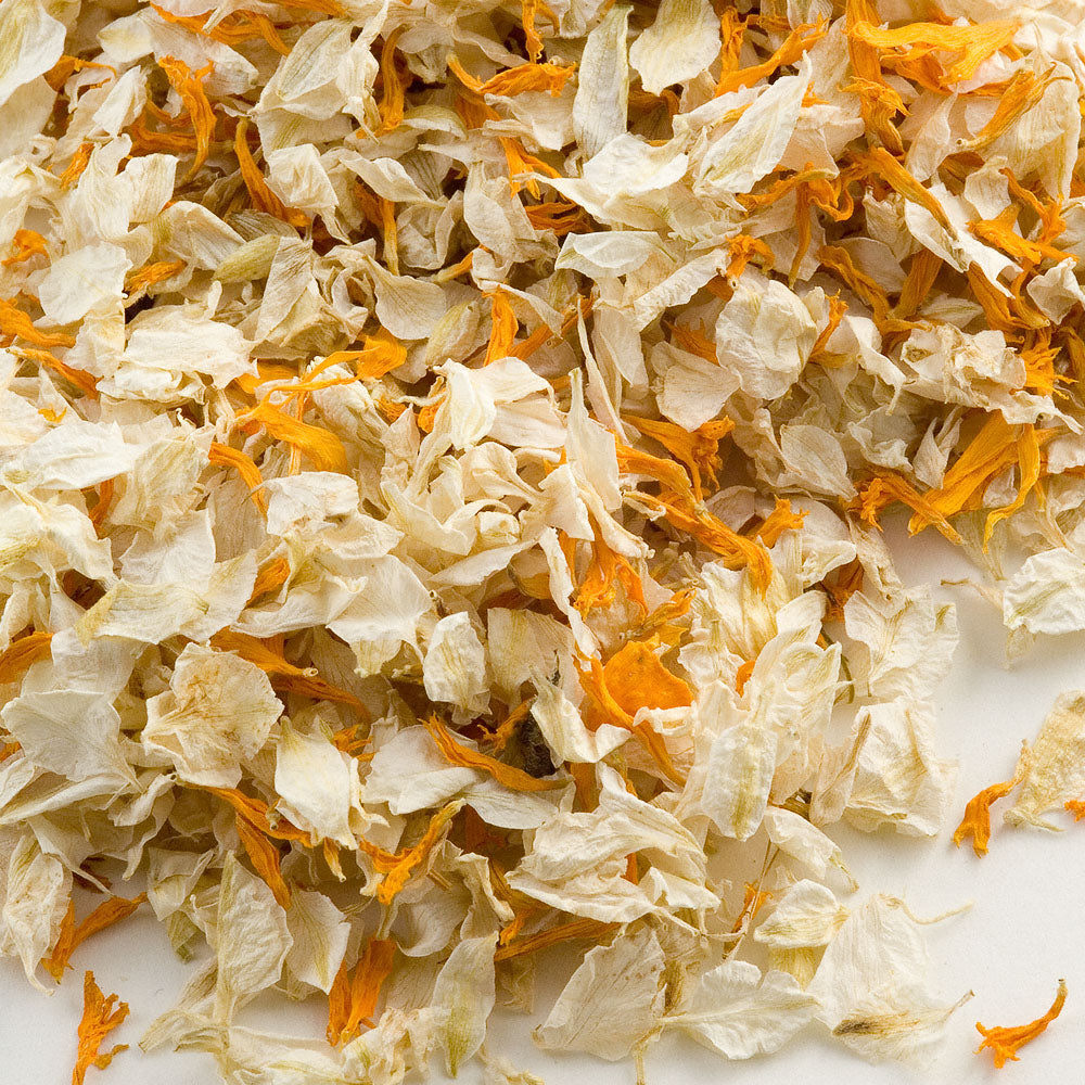 Loosely jug measured petals supplied in an ivory organza bag 17x23cm, approx 16-18g, provides approx 10 handfuls.
