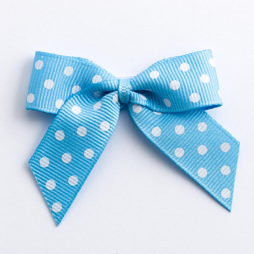 Pale Baby Blue Polka Dot Bows - Self Adhesive