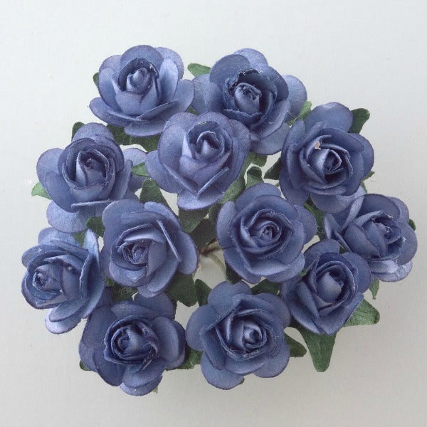 Pale Blue Paper Tea Roses Bunch of 12