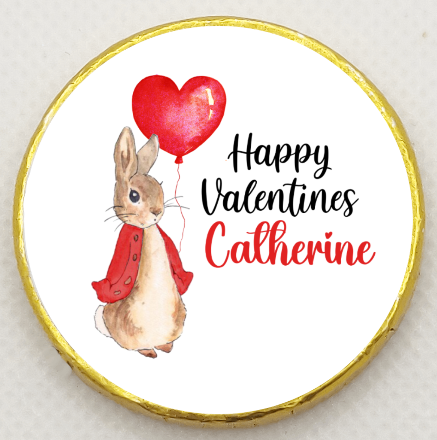 Personalised Peter Rabbit Red Heart - Chocolate Coin