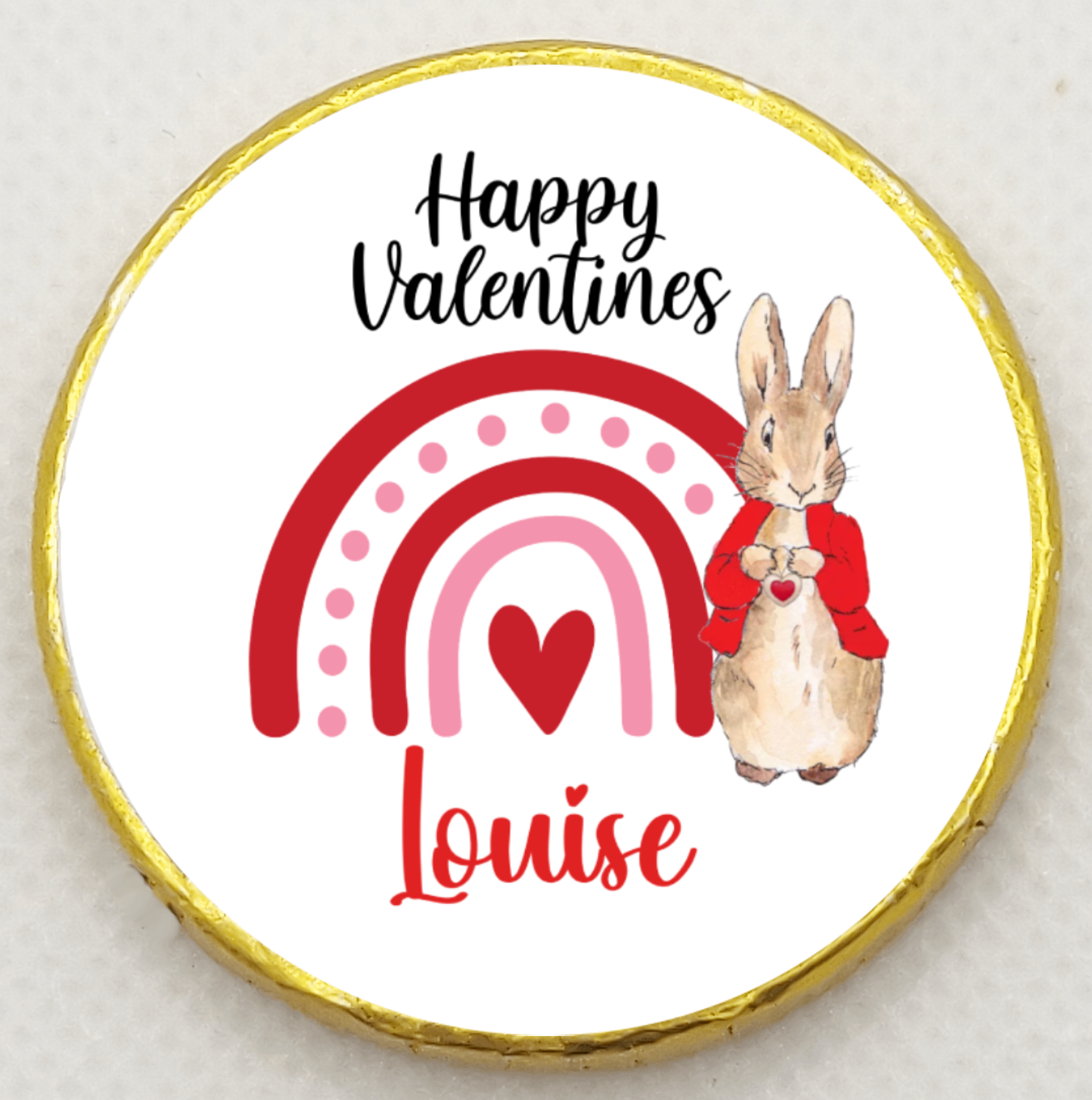 Personalised Peter Rabbit Red Happy Valentines Rainbow - Chocolate Coin