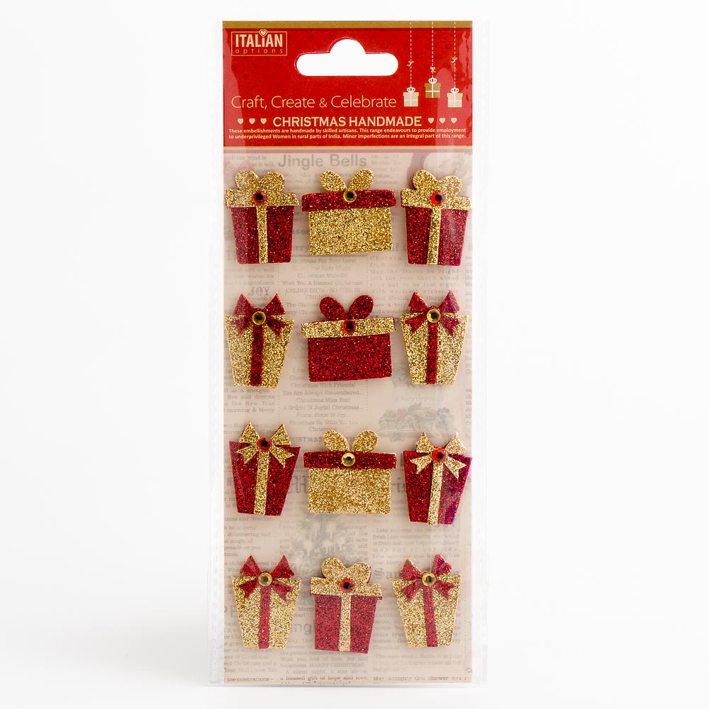 Red and Gold Glitter Presents 2.5cm & 2.8cm 12 Pack