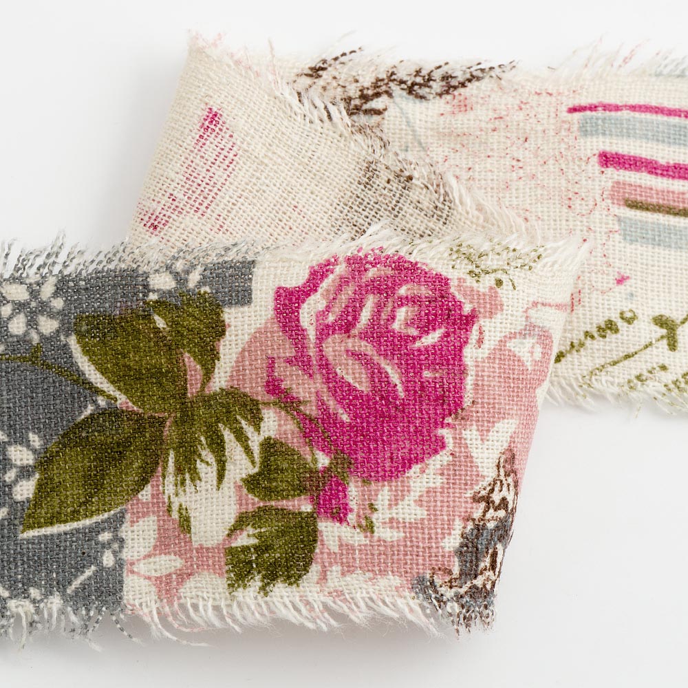 Rose and Script Burlap Frayed Edge Ribbon