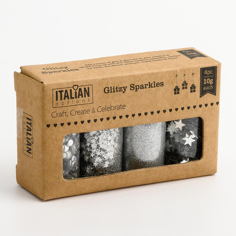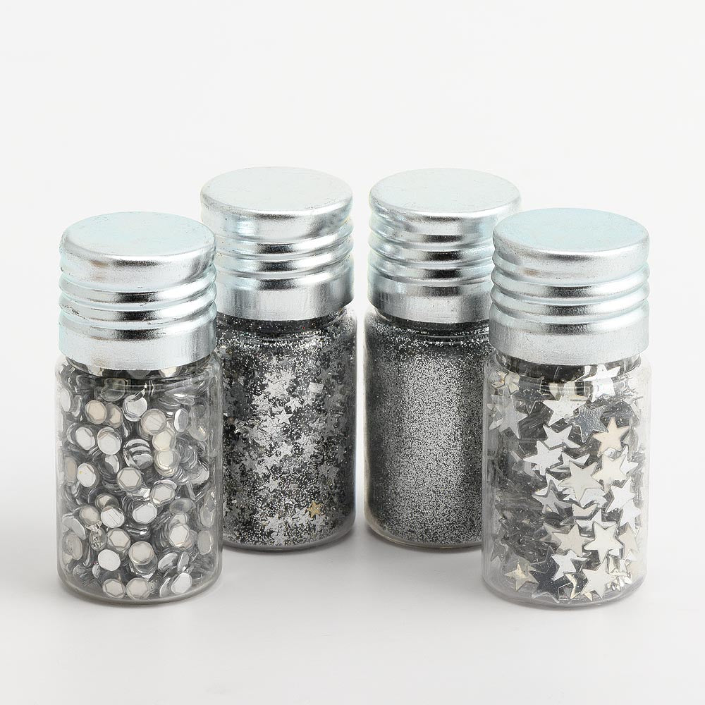 Silver 4mm Gems, Glitter & Star Twinkle Mixture, Extra Fine Glitter and Sequin Stars